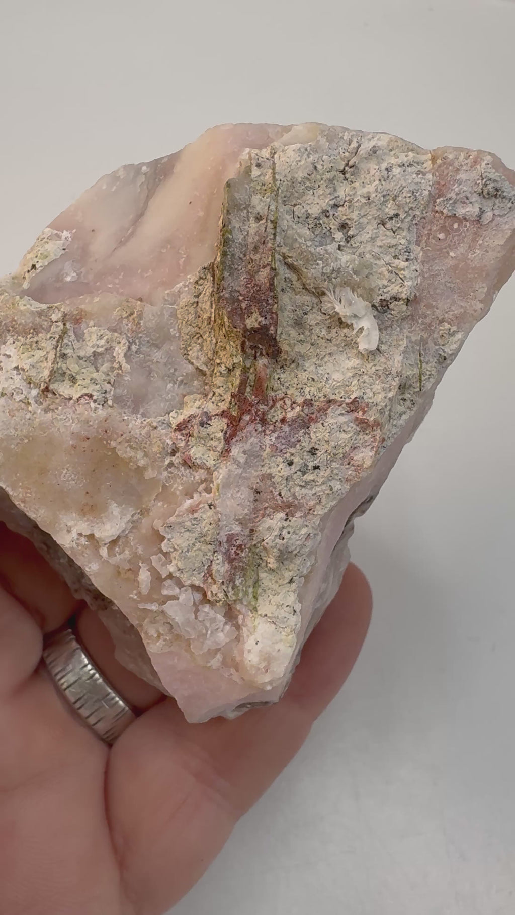 Pink opal is often associated with emotional balance and compassion and is thought to encourage calm reflection. This piece makes a subtle yet distinctive addition to mineral collections or decorative displays.