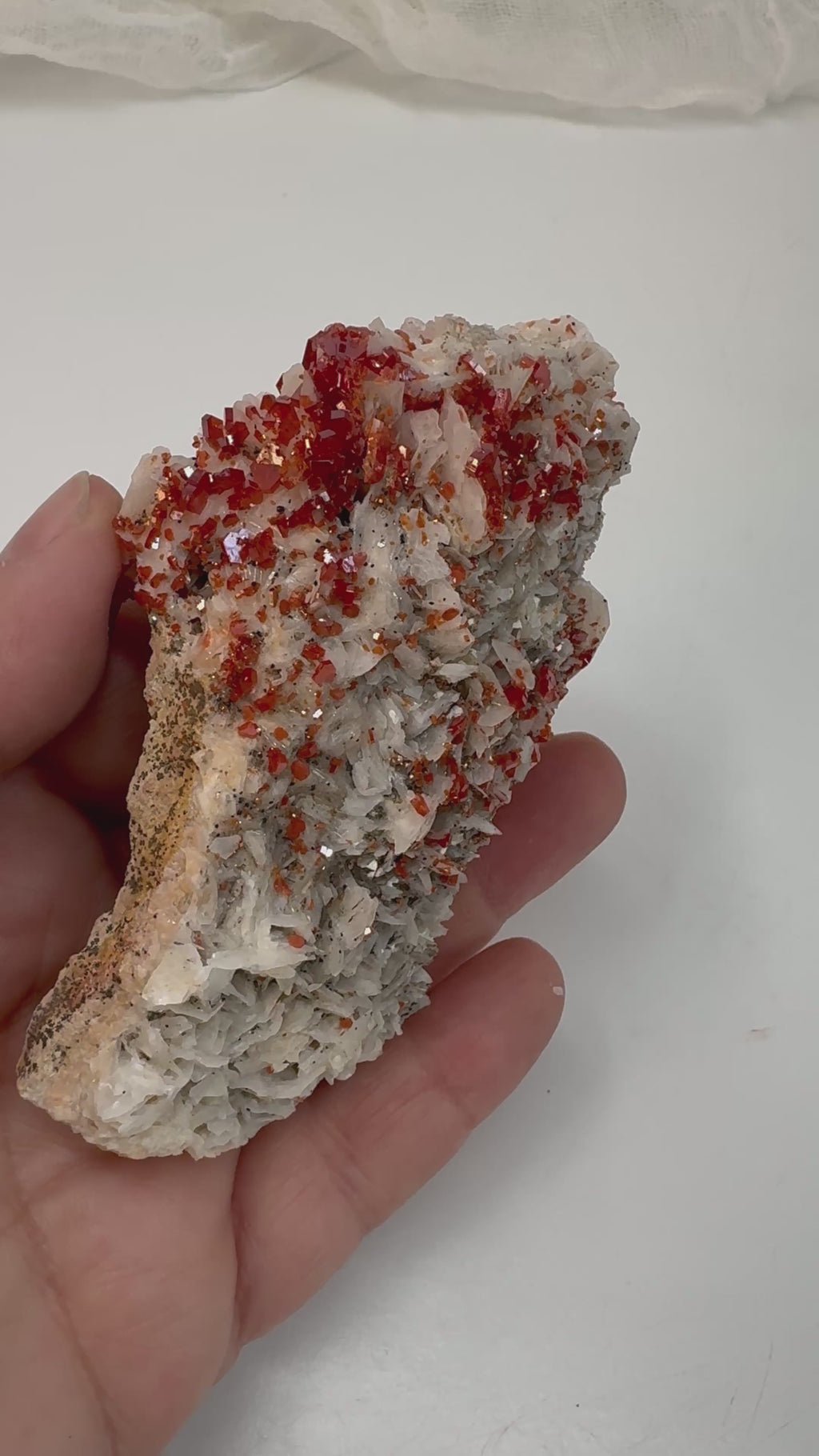Often associated with focus, vitality, and clarity of intention, vanadinite is thought to encourage motivation and grounded energy, while barite is often linked to calm and balance. Together, they form a visually compelling and naturally expressive mineral pairing.